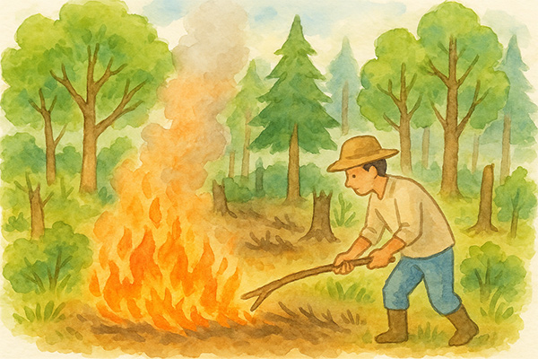 この有機土壌は一番イメージしやすいのは焼き畑農業です。長年、植物が生い茂っていた森林を燃やすと、そこには肥沃な土壌が姿を現します。