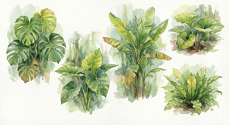■葉っぱが大きい植物は高温多湿の地域の植物に多い傾向です。