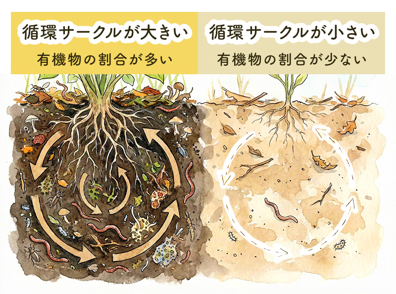 循環サイクルは土壌に対しての有機物の割合で示します。