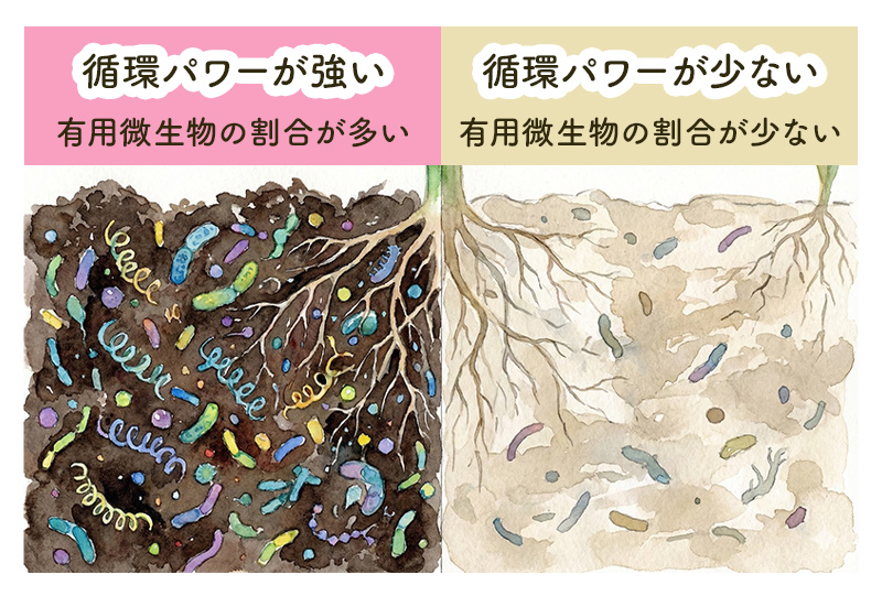 循環パワーは土壌に対しての有用微生物の割合で示します。