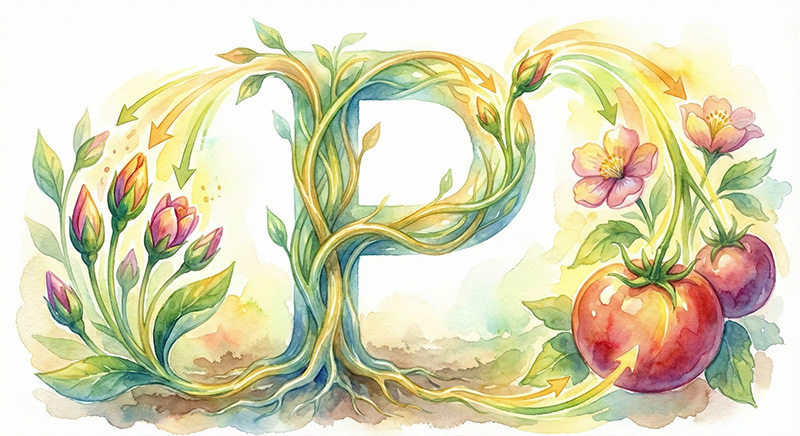| リン酸 | 生命維持の基礎代謝に必要です。植物が大きくしたい、伸ばしたい部位の先に集中的に集まり、その先に栄養素を送ります。 花芽ができる前に効かすと花芽分化が促進され、花芽ができた後に効かすと花や実が大きく立派になります。栄養生長時に窒素とリン酸を両方効かせすぎると生長が分散してしまいますので、リン酸は適量に控えます。 生殖生長時に窒素を控え、リン酸をしっかり効かすようにするのが基本です。日本の土壌は火山灰が多く、リン酸は不足がちになります。 過剰症状 カルシウム、マグネシウム、鉄、亜鉛、アルミニウムなどが結合し欠乏させます。 窒素が過剰に使われてしまいます。 欠乏症状 花芽が少ない、新芽が出にくい、生長が悪い、未消化窒素の蓄積など起こります。 |