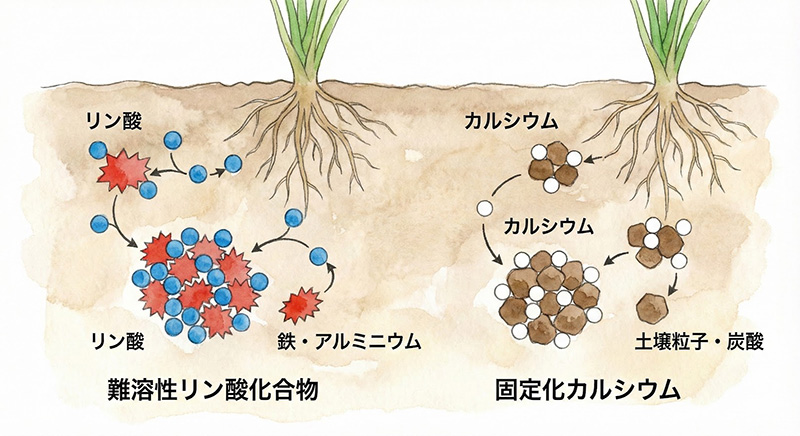有機土壌はリン酸やカルシウムがムッチャ結合しやすくなっています。