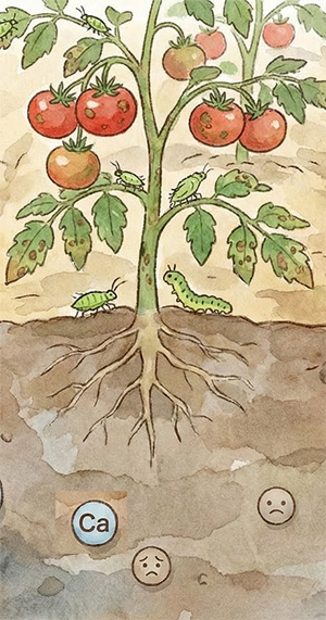 日本は高温多湿で病害虫発生が多くなると言われていますが、日本は肥沃な土壌を持っている代わりにカルシウムが少ないのも病害虫発生が多くなる要因です。