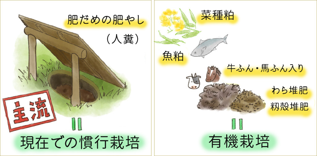 その根本は、昔は肥やしが貴重で身近で栽培に活かせるモノは色々使っていたということなんです。肥やしが貴重だったからこそ身近にある色々なモノを上手く活かして美味しい作物を収穫する、そのような栽培技術だったんですね。